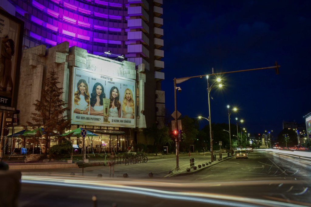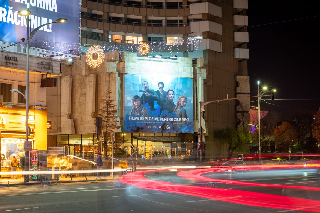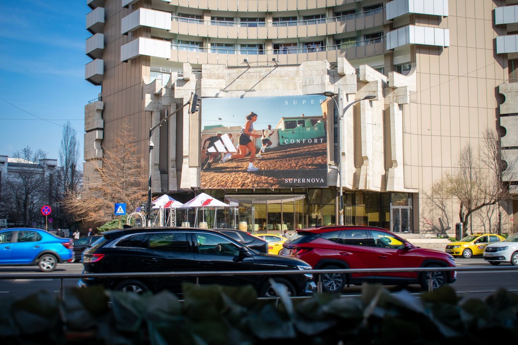 Amplasat pe fațada Grand Hotel Bucharest, acest panou publicitar oferă o vizibilitate de top într-o locație premium, frecventată zilnic de mii de oameni. Piața Universității este un punct central al orașului, unde se întâlnesc turiști, localnici și studenți, aproape de Teatrul Național, Universitatea din București și numeroase cafenele și restaurante.
